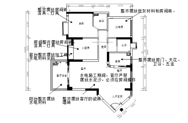 1、 廚房、衛(wèi)生間、陽(yáng)臺(tái)地面不允許走線管,進(jìn)入廚衛(wèi)線管要求從墻面開(kāi)孔,不能從門口或墻角穿孔,沿墻走;墻面布管需橫平豎直;廚房水管入墻固定,總閥位置需從墻面伸出。 2、廚房、衛(wèi)生間、陽(yáng)臺(tái)地面用水集中區(qū)域,走管布線會(huì)導(dǎo)致用電安全隱患;水管入墻固定,總閥位置伸出方便后期維修,同時(shí)能夠避免了櫥柜安裝底板開(kāi)孔。