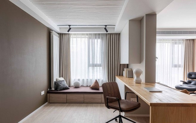 輕工作區(qū)與親子空間完美的結(jié)合成為了現(xiàn)在的多功能空間。工作臺(tái)的桌面利用公司廢棄的木板重新拋光打磨后繼續(xù)循環(huán)利用,經(jīng)濟(jì)又環(huán)保。這次我們拋開了審美疲勞的石膏吊頂,選擇了少用的竹吊頂,它既是整個(gè)空間的亮點(diǎn)也讓空間多了一份禪意。