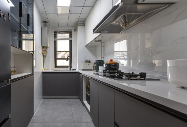 進入玄關(guān),卸掉一天的塵土與工作上的乏累,進入專屬于家人的那一份愜意,入門左手邊就是鞋柜,柜子1.2米高,這個高度既起到了對空間分割也不至于太過于壓抑,由原木色的柜體搭配白色的柜門組成,下部采用懸空設(shè)計,可以“藏”起來六七雙鞋子,上部也預留了一排抽屜,可以用來收納出門時常帶的東西。
